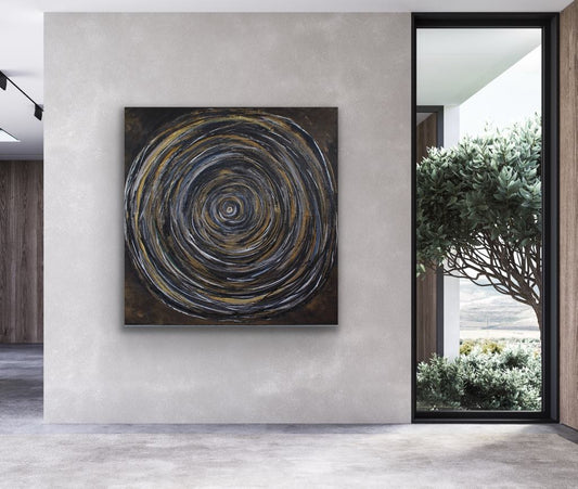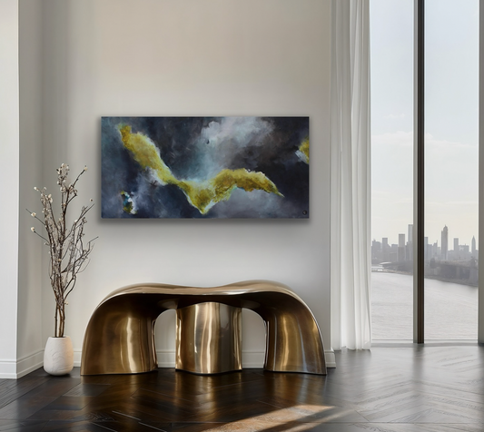 Golden Gestures - original abstrakt akrylmaleri i ramme med passepartout