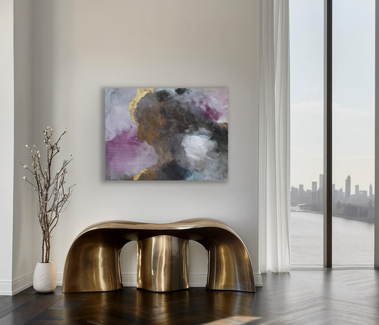"Dawn's Whisper" - original abstrakt akrylmaleri i ramme med passepartout